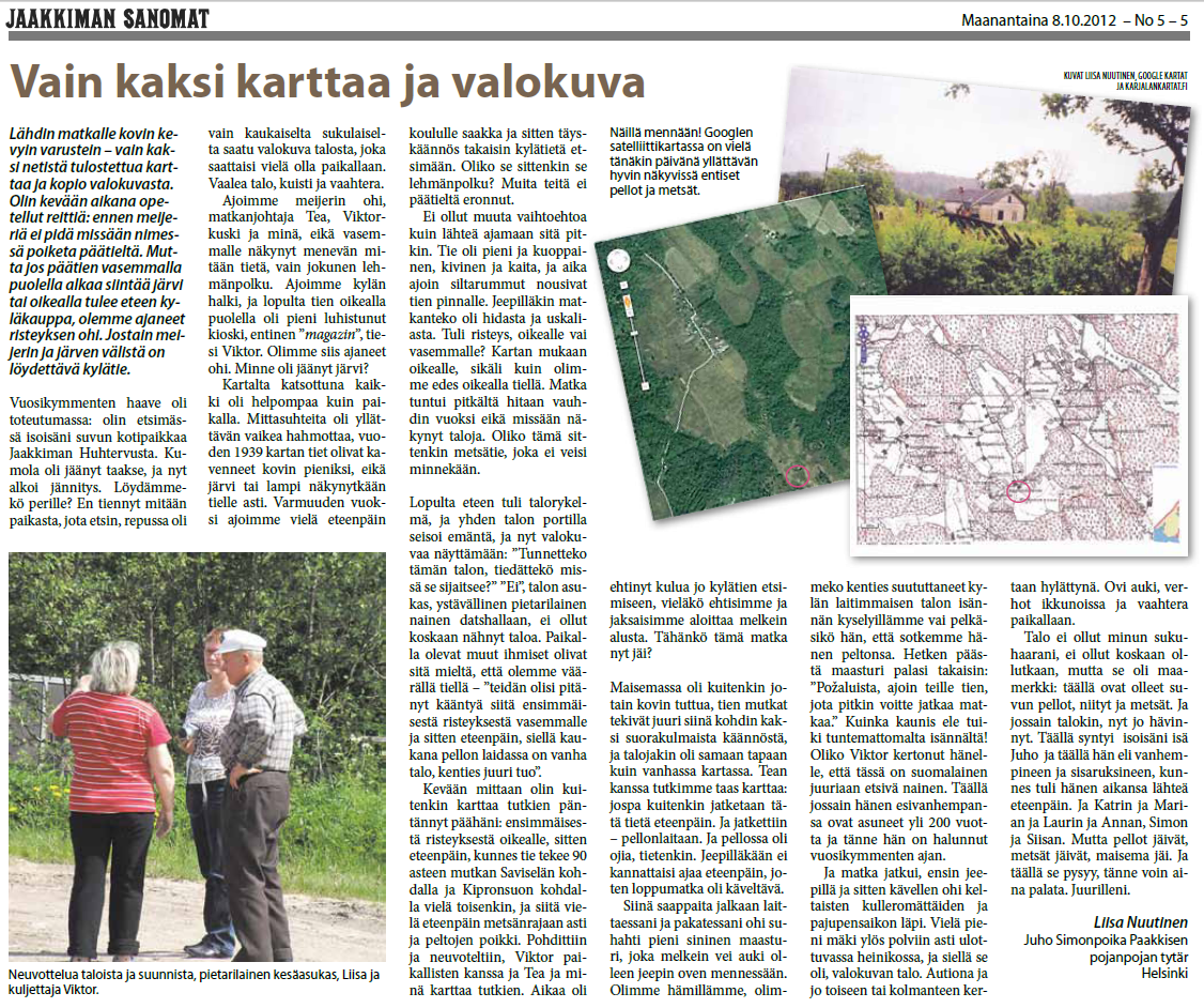Lähde: Jaakkiman Sanomat 8.10.2012. Julkaistu lehden luvalla.