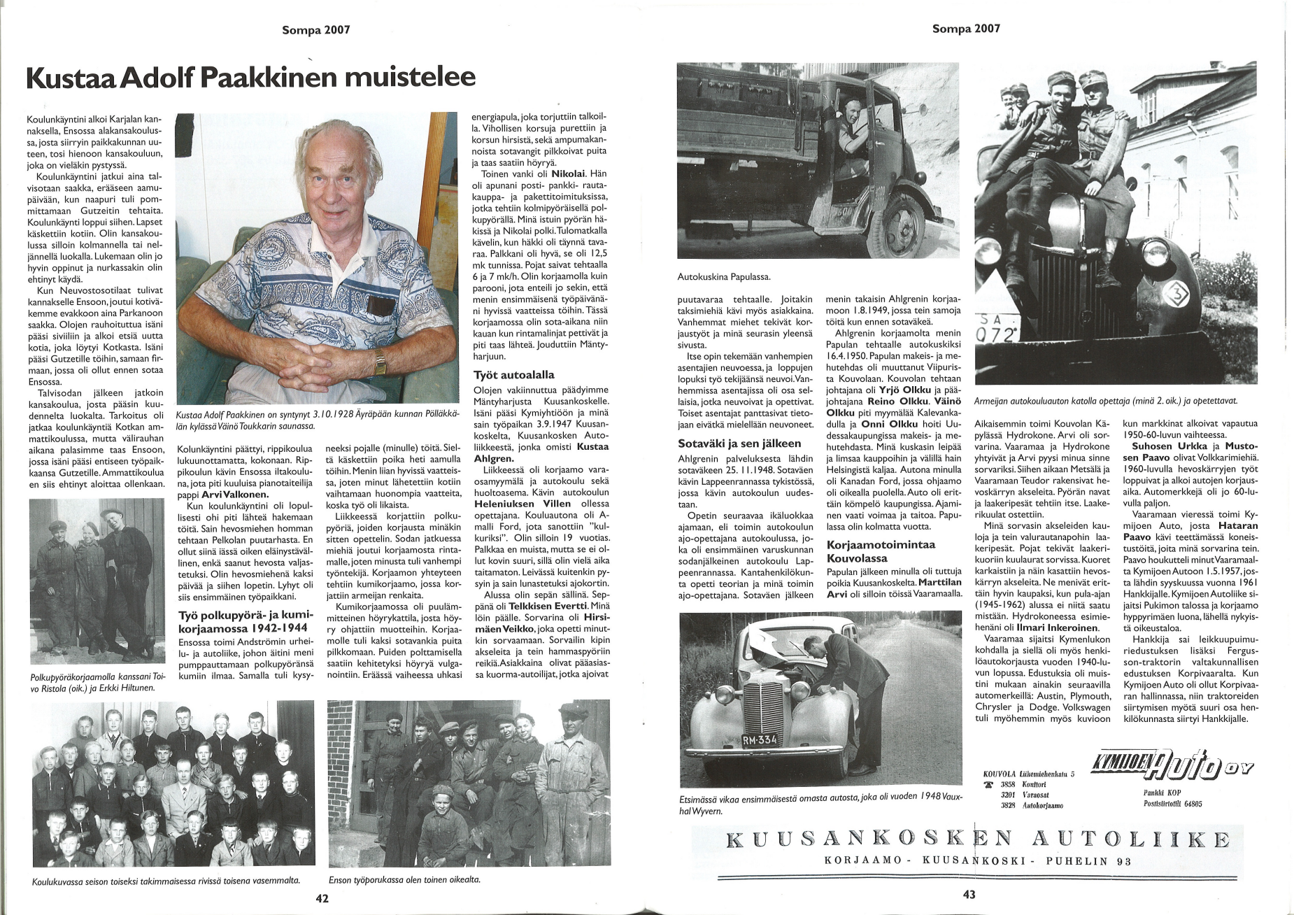 Pohjois-Kymenlaakson Autoteknillisen yhdistyksen Sompa-lehdessä 2007 on julkaistu Äyräpäässä v. 1928 syntyneen Kustaa Adolf Paakkisen muistelut elämänvaiheistaan.